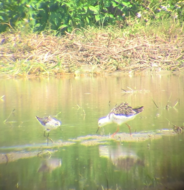 Male Ruff (right hand bird) on flooded fields near Km 146 at Beimen. This is a scarce passage migrant in Taiwan.