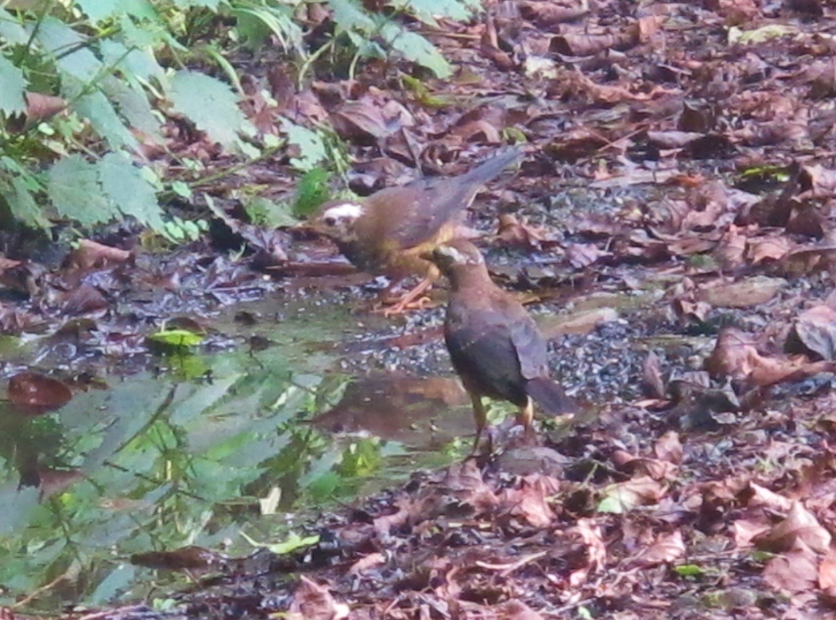 Young Taiwan Thrushes at a puddle on Dasyueshan forest road 210, September 6th.